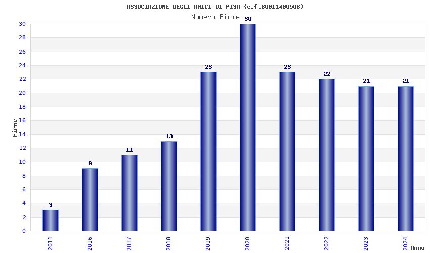 | Anno | Firme | Importi | Media | Naz. | Reg. | Prov. | Comu. |