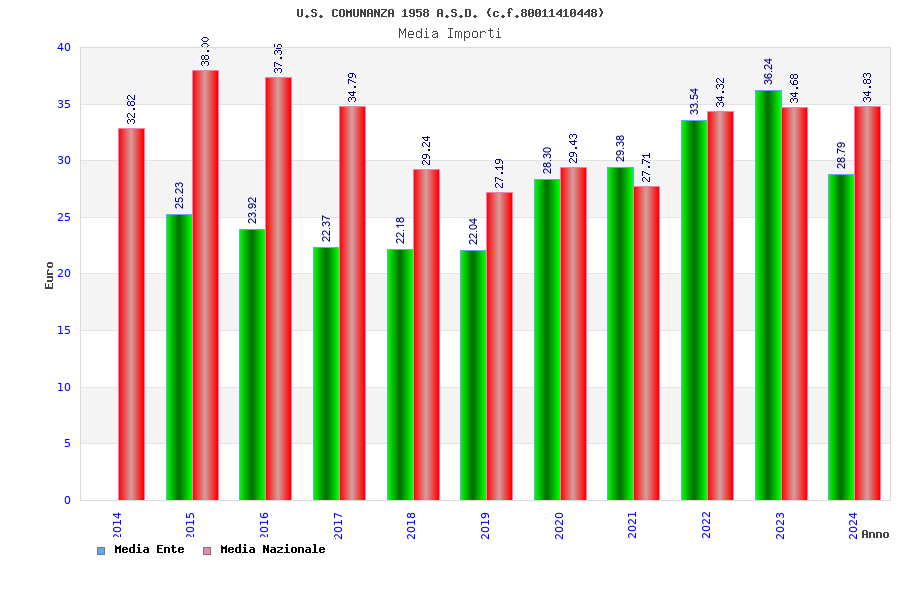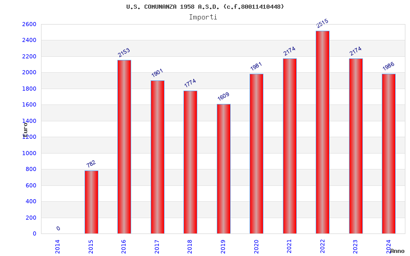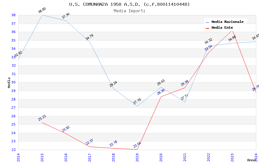 | Anno | Firme | Importi | Media | Naz. | Reg. | Prov. | Comu. |