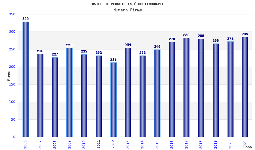 | Anno | Firme | Importi | Media | Naz. | Reg. | Prov. | Comu. |