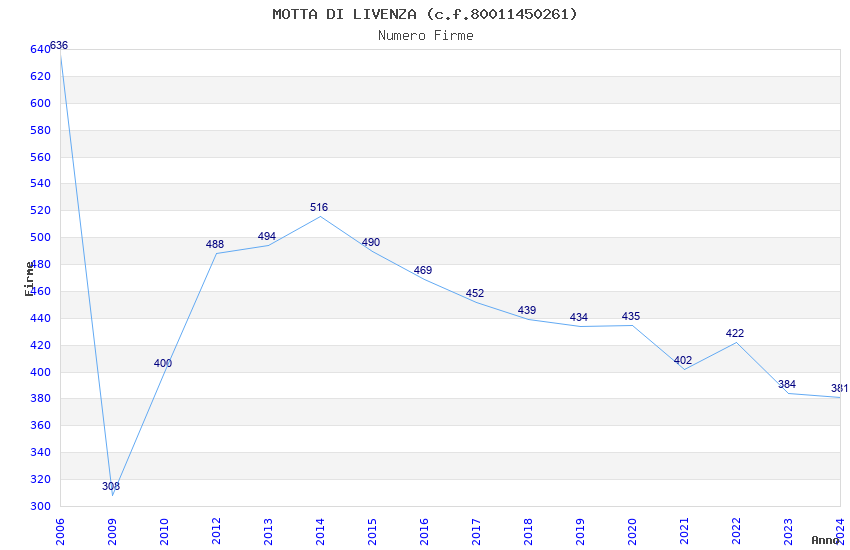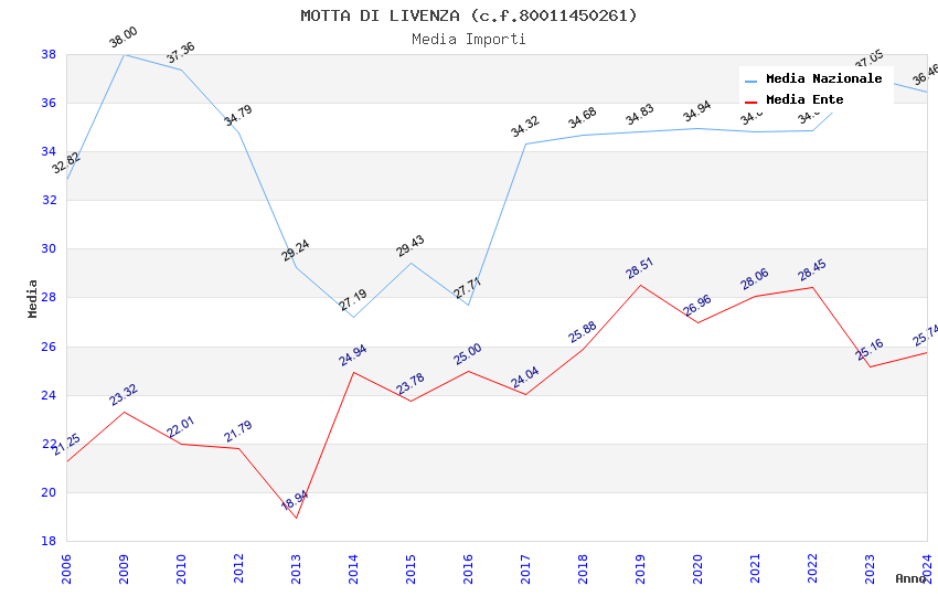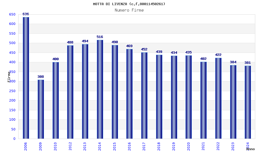 | Anno | Firme | Importi | Media | Naz. | Reg. | Prov. | Comu. |