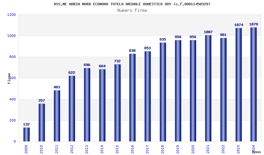 | Anno | Firme | Importi | Media | Naz. | Reg. | Prov. | Comu. |