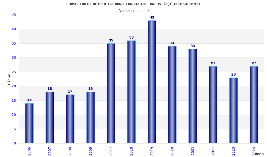 | 2019 | 43 | 1.847,20 | 42,96 | 25.301 | 5.647 | 215 | 62 |