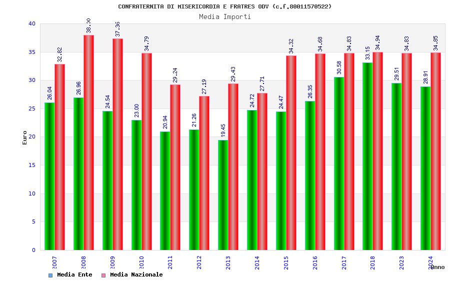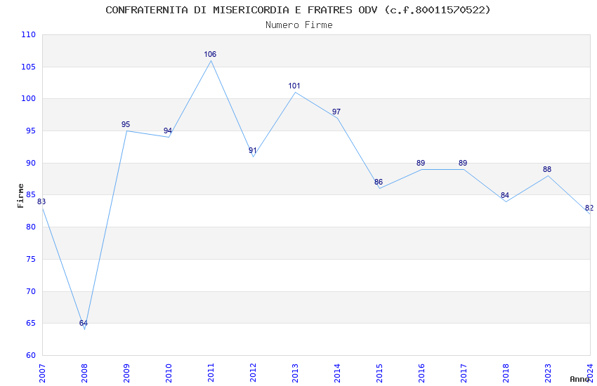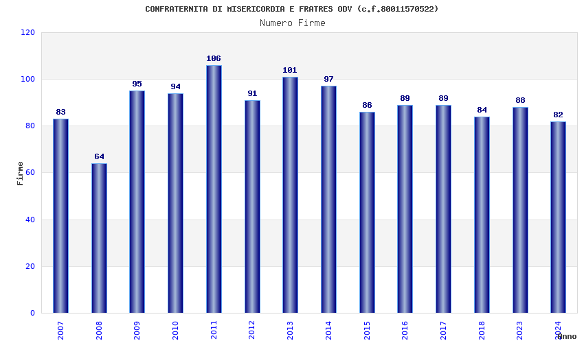 | Anno | Firme | Importi | Media | Naz. | Reg. | Prov. | Comu. |
