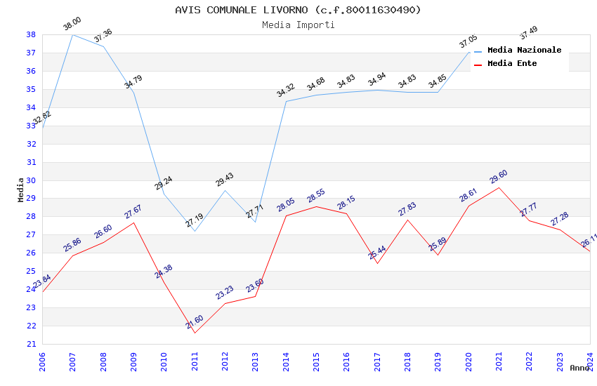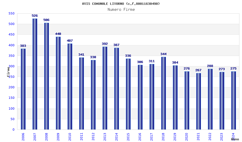 | Anno | Firme | Importi | Media | Naz. | Reg. | Prov. | Comu. |