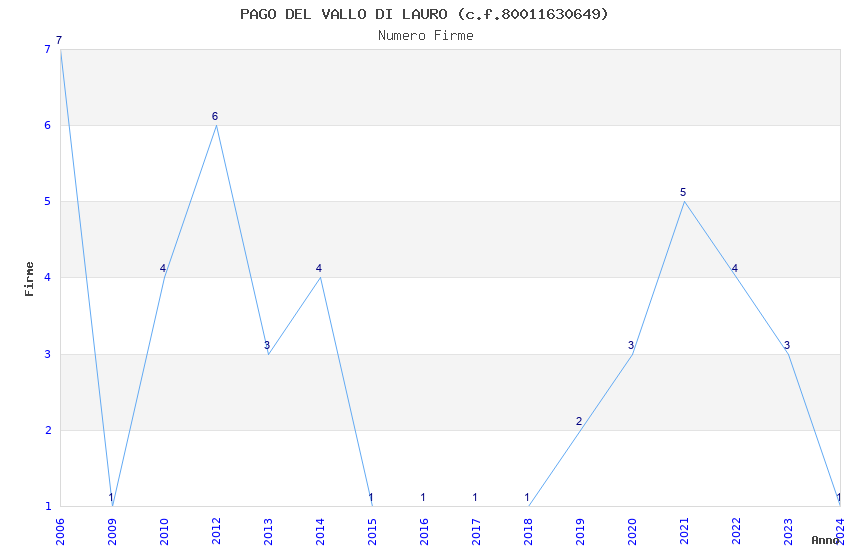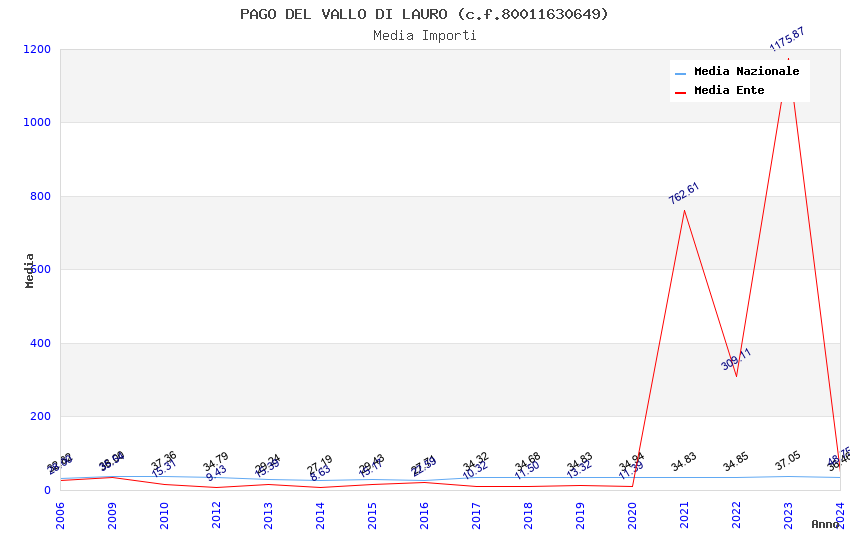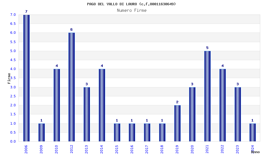 | Anno | Firme | Importi | Media | Naz. | Reg. | Prov. | Comu. |