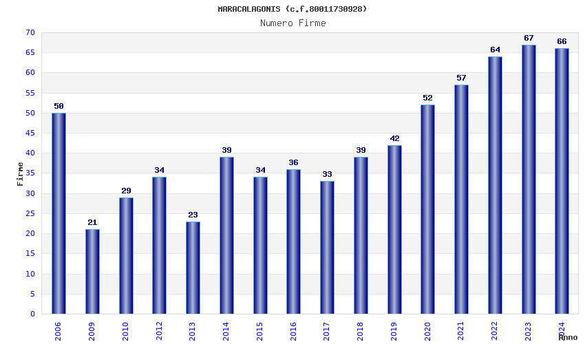 | 2023 | 67 | 1.474,59 | 22,01 | 29.050 | 614 | 229 | 3 |