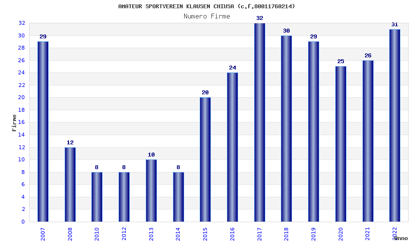 | 2017 | 32 | 2.312,62 | 72,27 | 21.276 | 556 | 287 | 4 |