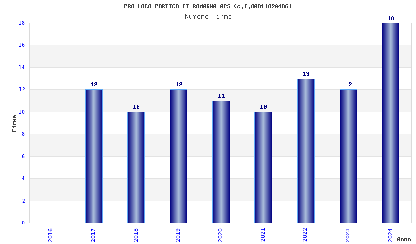 | Anno | Firme | Importi | Media | Naz. | Reg. | Prov. | Comu. |