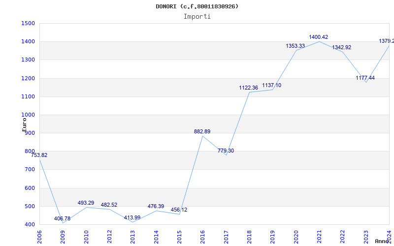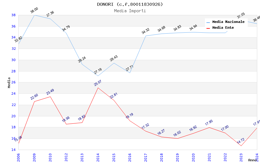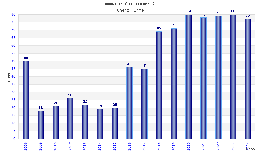 | Anno | Firme | Importi | Media | Naz. | Reg. | Prov. | Comu. |