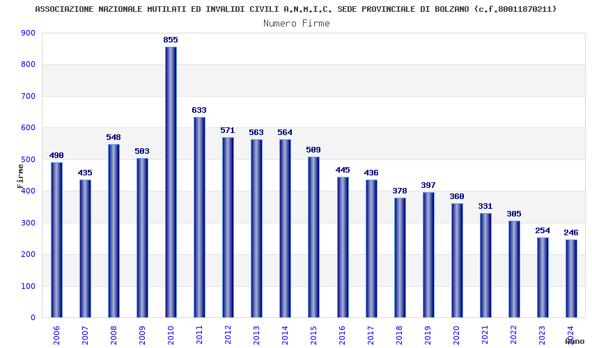 | Anno | Firme | Importi | Media | Naz. | Reg. | Prov. | Comu. |
