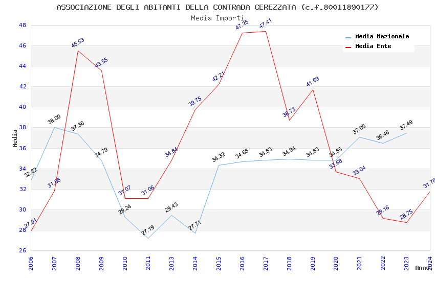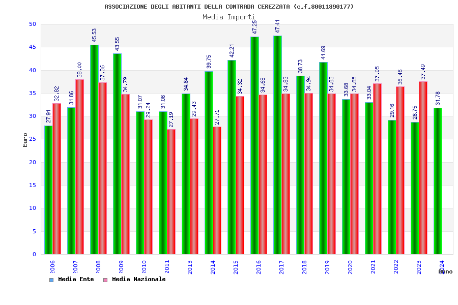 | Anno | Firme | Importi | Media | Naz. | Reg. | Prov. | Comu. |
