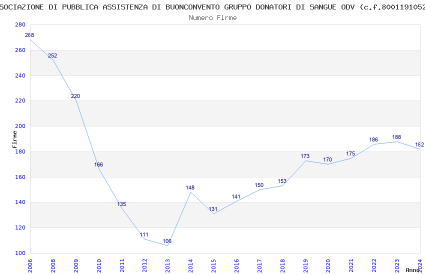 | 2024 | 182 | 3.400,86 | 18,69 | 15.593 | 960 | 106 | 1 |