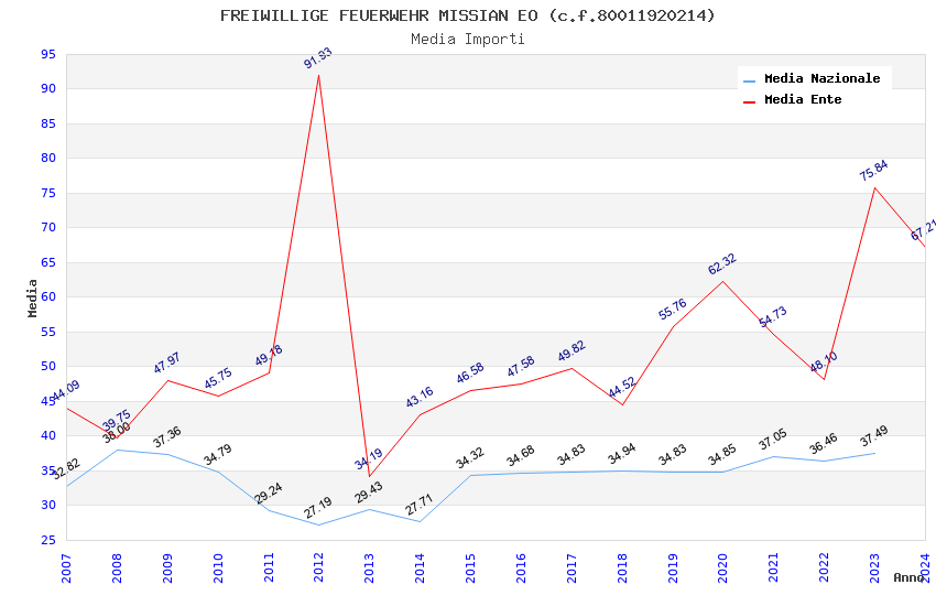 | Anno | Firme | Importi | Media | Naz. | Reg. | Prov. | Comu. |