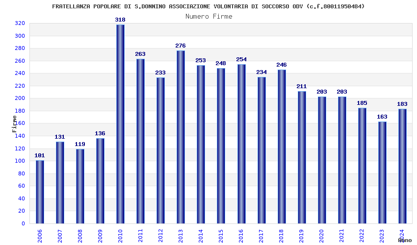 | Anno | Firme | Importi | Media | Naz. | Reg. | Prov. | Comu. |