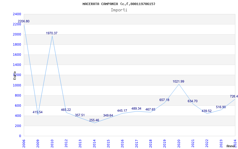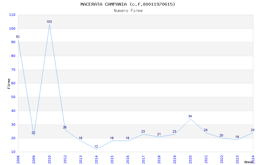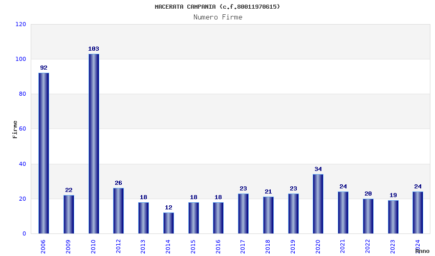 | Anno | Firme | Importi | Media | Naz. | Reg. | Prov. | Comu. |
