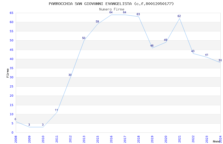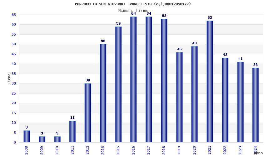 | Anno | Firme | Importi | Media | Naz. | Reg. | Prov. | Comu. |