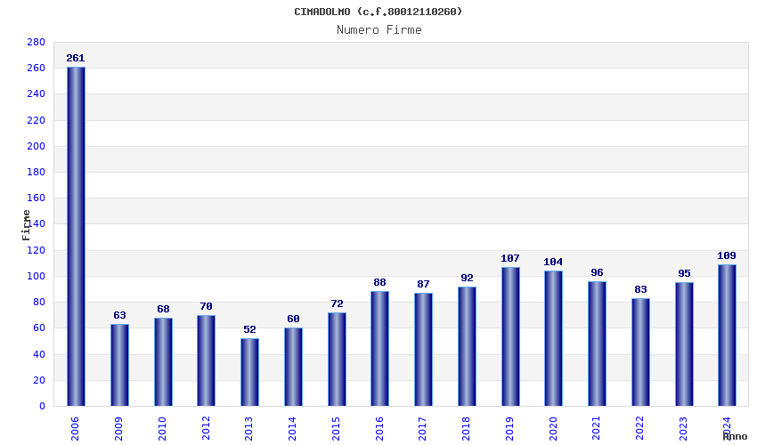 Anno Firme Importi Media Naz. Reg. Prov. Comu.