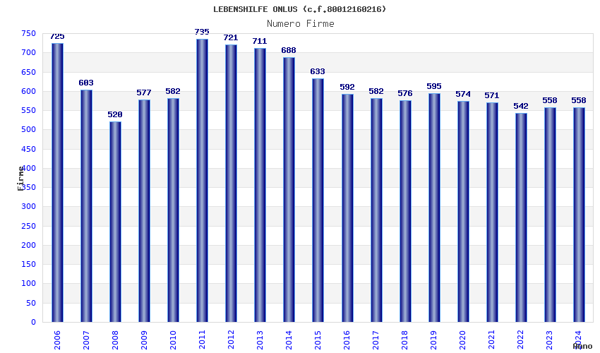 | Anno | Firme | Importi | Media | Naz. | Reg. | Prov. | Comu. |