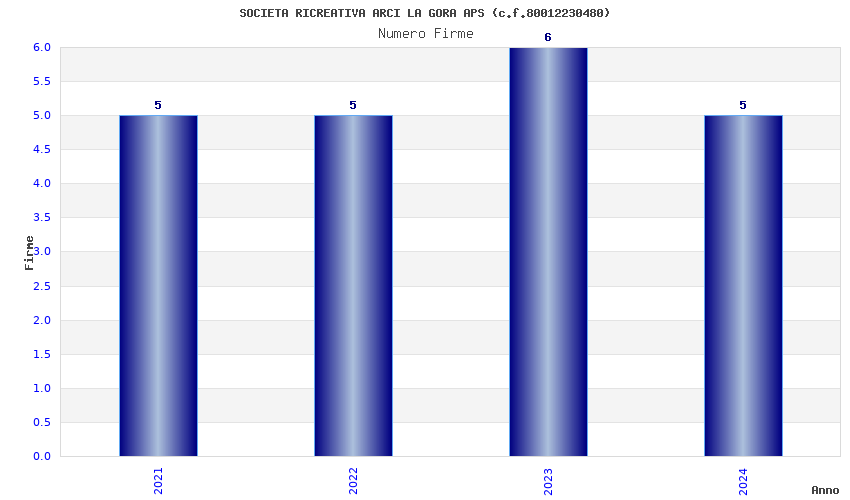 | Anno | Firme | Importi | Media | Naz. | Reg. | Prov. | Comu. |