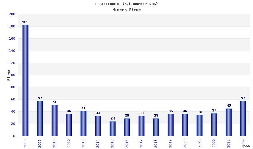 Anno Firme Importi Media Naz. Reg. Prov. Comu.