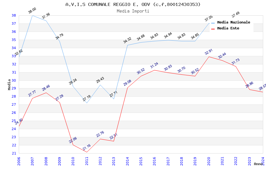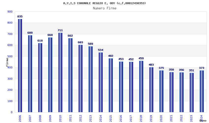 | Anno | Firme | Importi | Media | Naz. | Reg. | Prov. | Comu. |