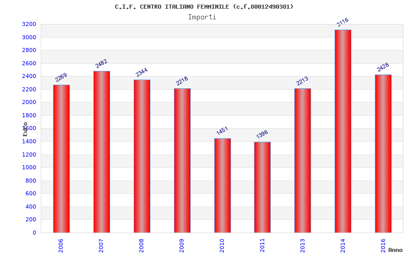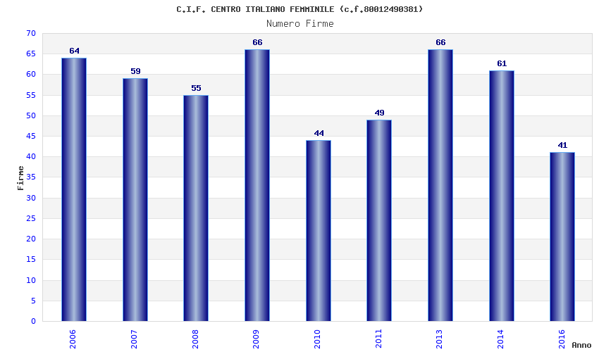 | Anno | Firme | Importi | Media | Naz. | Reg. | Prov. | Comu. |