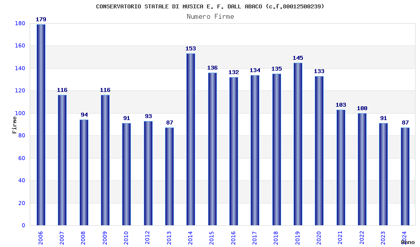 | Anno | Firme | Importi | Media | Naz. | Reg. | Prov. | Comu. |