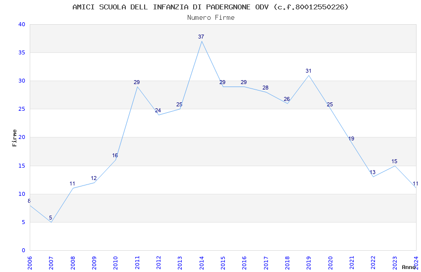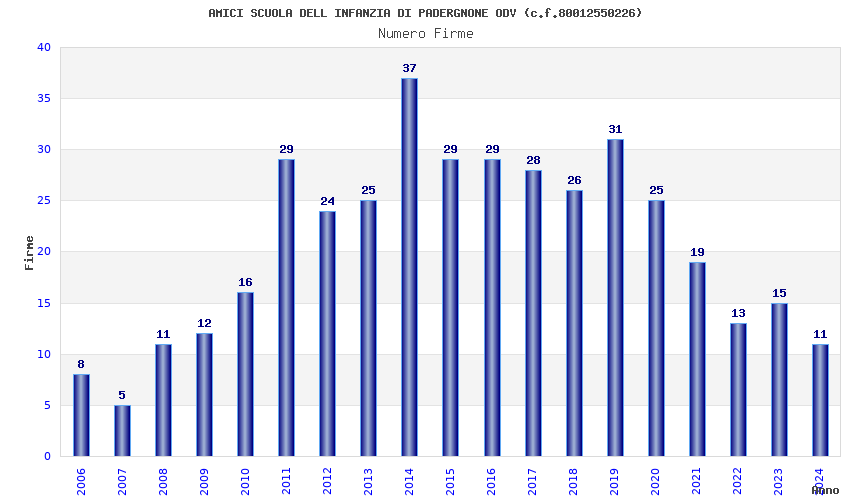 | Anno | Firme | Importi | Media | Naz. | Reg. | Prov. | Comu. |