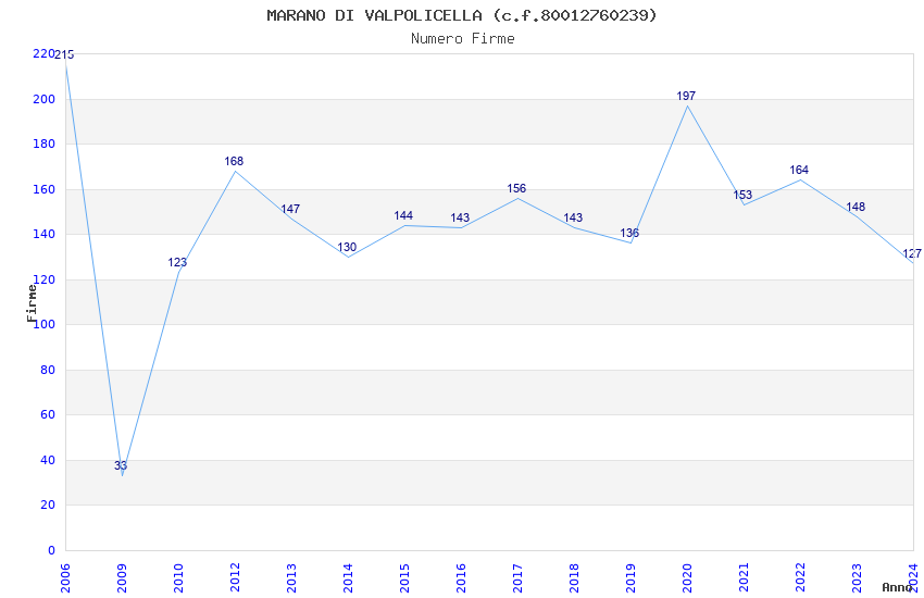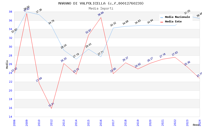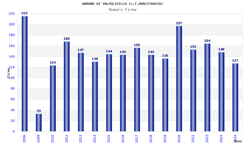 | Anno | Firme | Importi | Media | Naz. | Reg. | Prov. | Comu. |