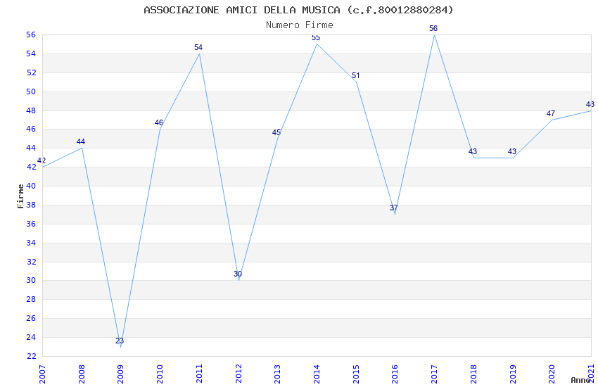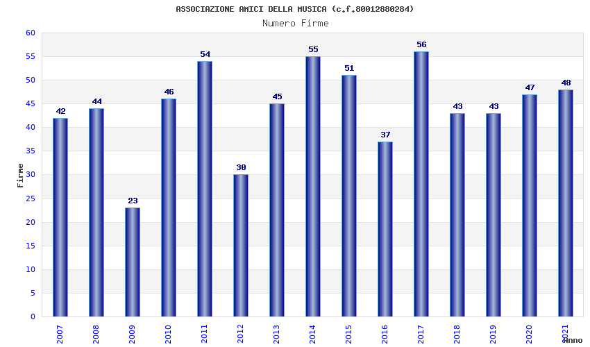 | Anno | Firme | Importi | Media | Naz. | Reg. | Prov. | Comu. |