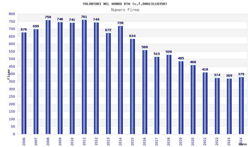| Anno | Firme | Importi | Media | Naz. | Reg. | Prov. | Comu. |