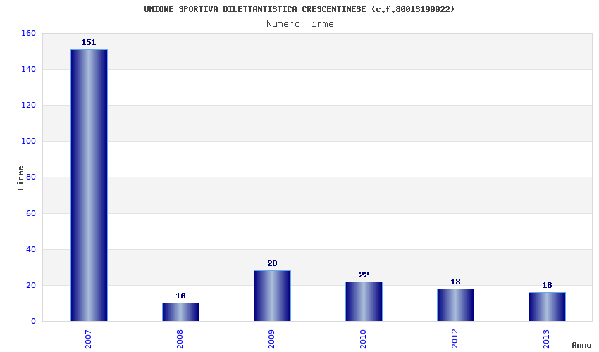 | Anno | Firme | Importi | Media | Naz. | Reg. | Prov. | Comu. |