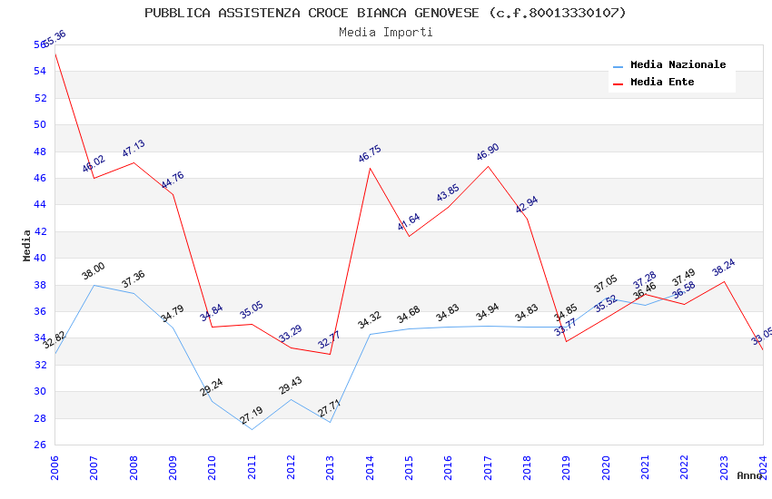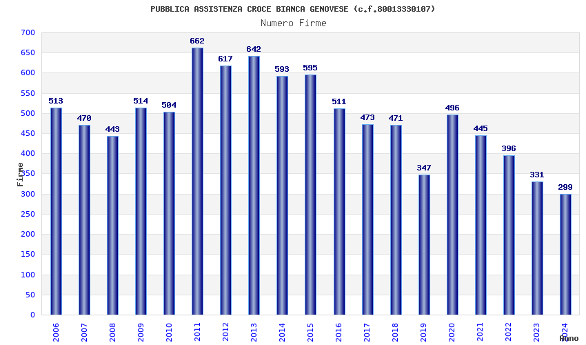 | Anno | Firme | Importi | Media | Naz. | Reg. | Prov. | Comu. |