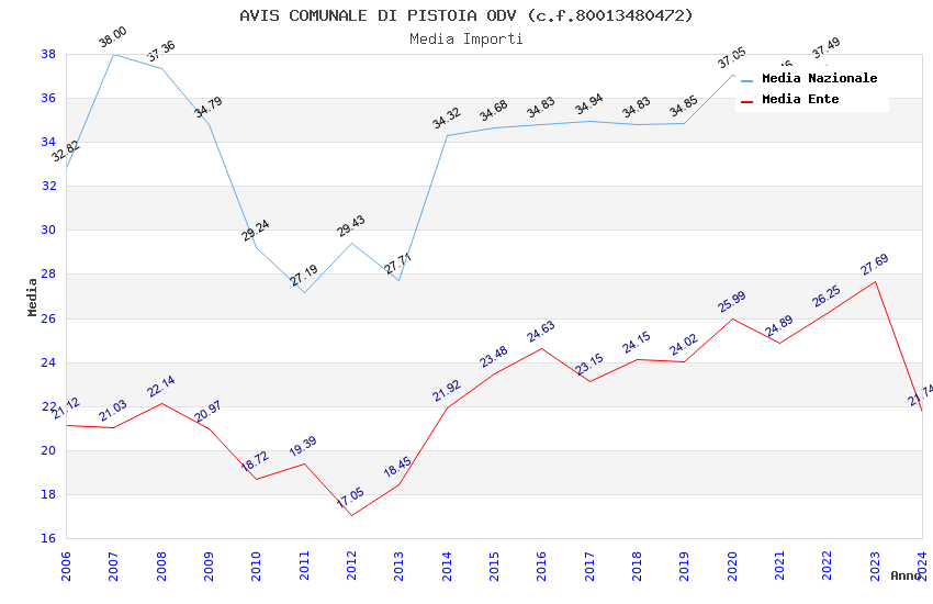 | Anno | Firme | Importi | Media | Naz. | Reg. | Prov. | Comu. |