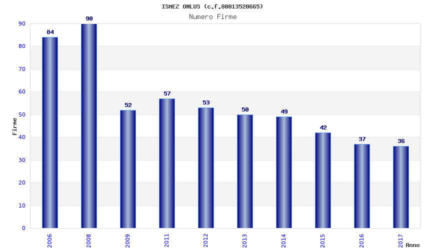 | Anno | Firme | Importi | Media | Naz. | Reg. | Prov. | Comu. |