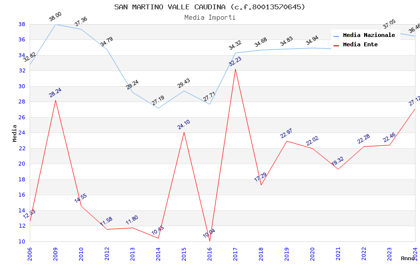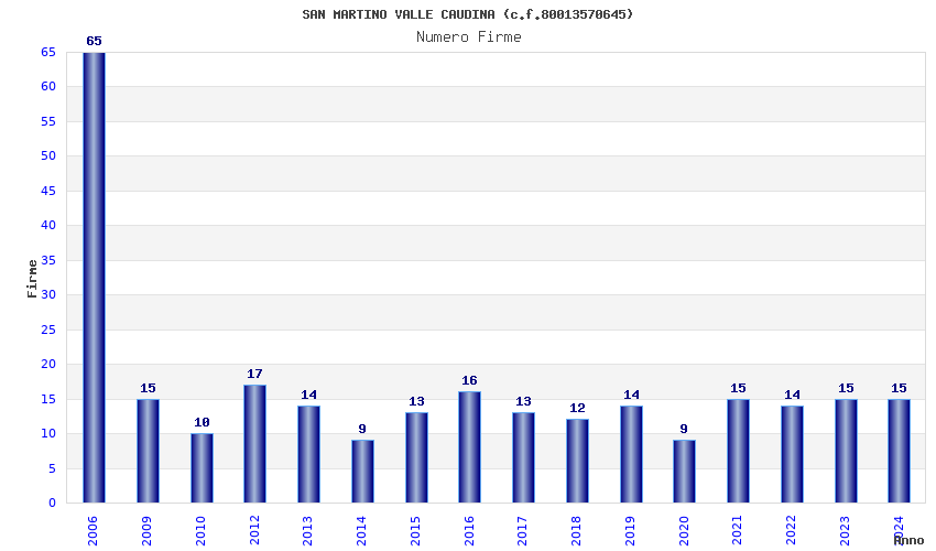 | Anno | Firme | Importi | Media | Naz. | Reg. | Prov. | Comu. |