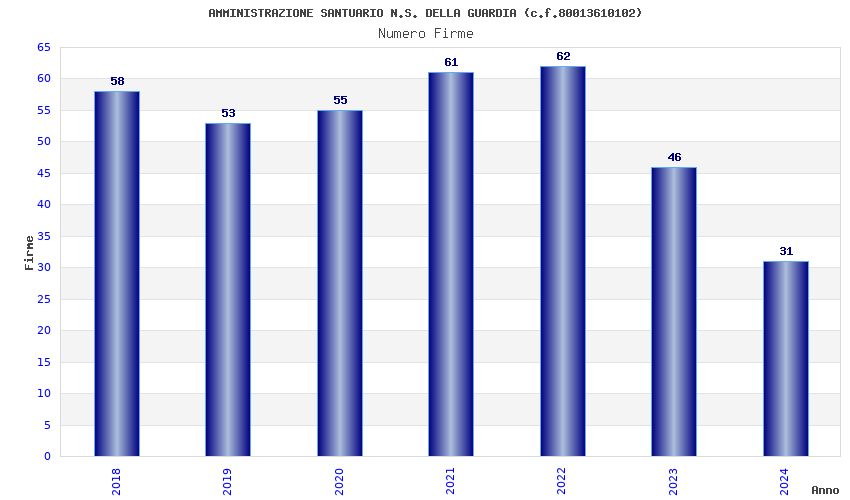 | Anno | Firme | Importi | Media | Naz. | Reg. | Prov. | Comu. |
