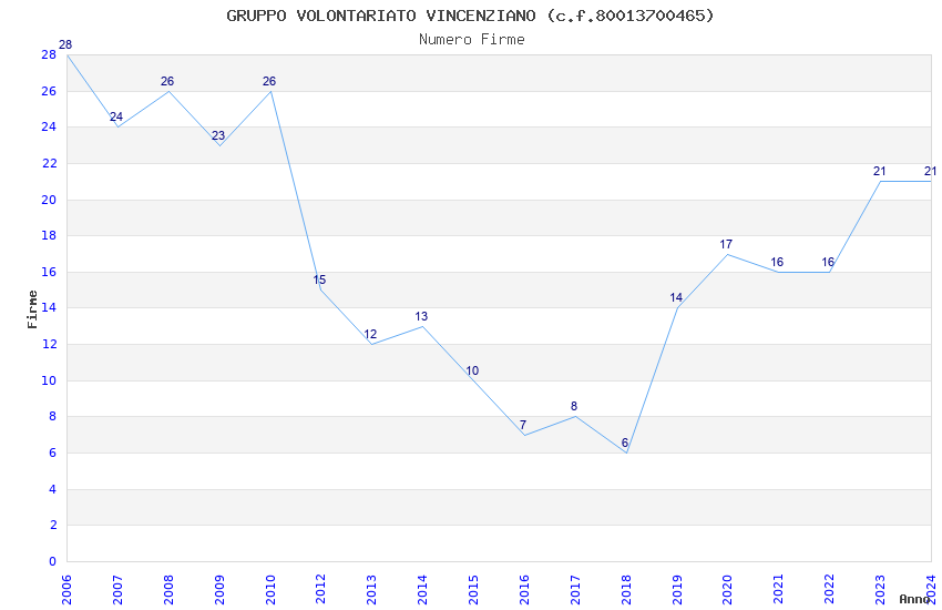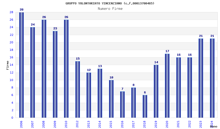 | Anno | Firme | Importi | Media | Naz. | Reg. | Prov. | Comu. |