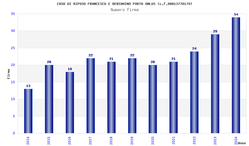 | Anno | Firme | Importi | Media | Naz. | Reg. | Prov. | Comu. |