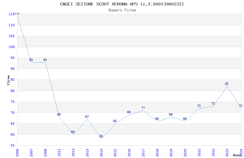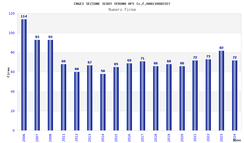 | Anno | Firme | Importi | Media | Naz. | Reg. | Prov. | Comu. |