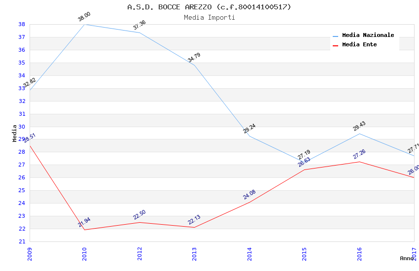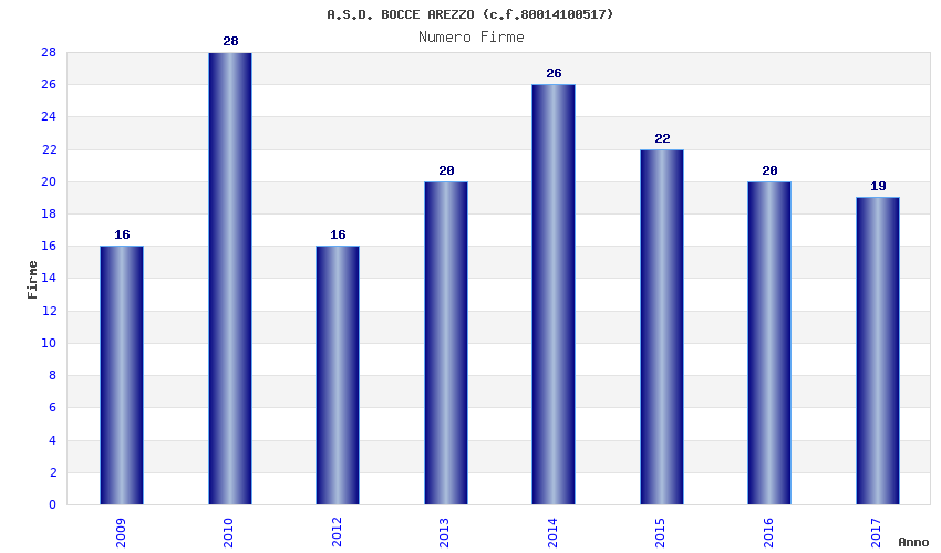 | Anno | Firme | Importi | Media | Naz. | Reg. | Prov. | Comu. |