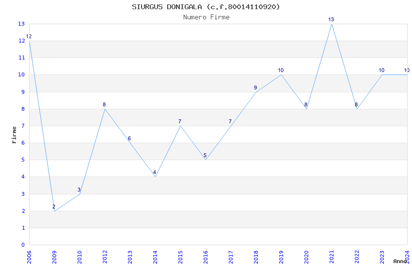 | 2021 | 13 | 196,50 | 15,12 | 58.736 | 1.574 | 347 | 4 |
