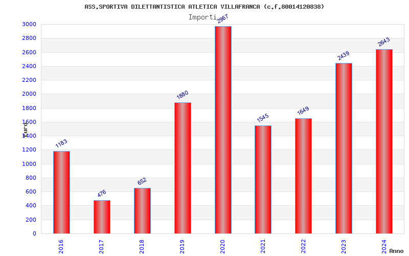 | Anno | Firme | Importi | Media | Naz. | Reg. | Prov. | Comu. |