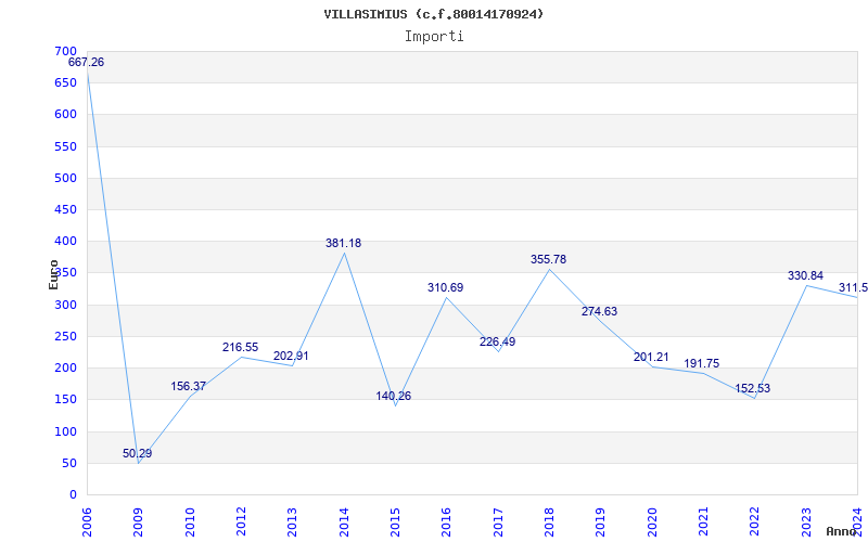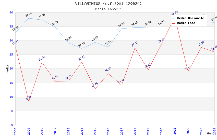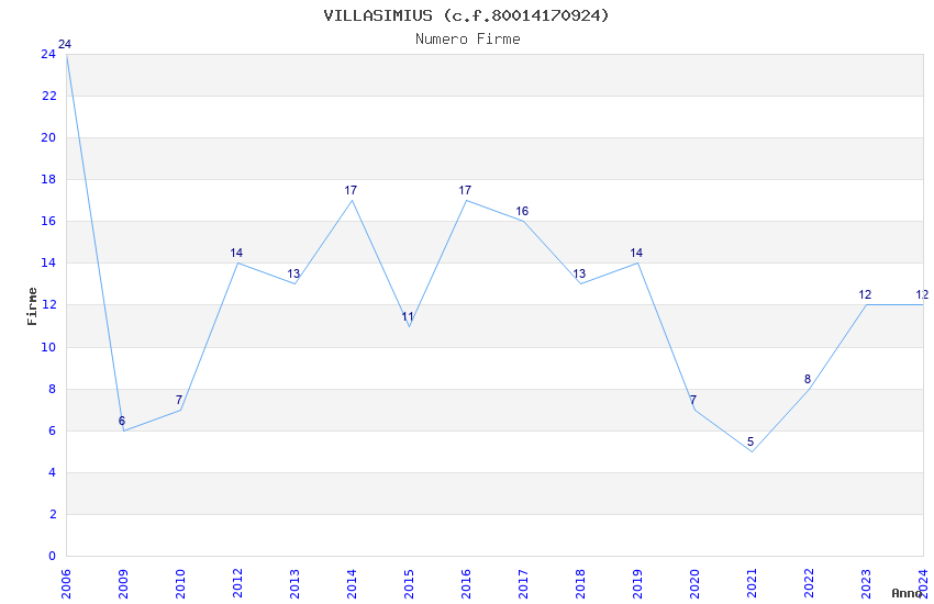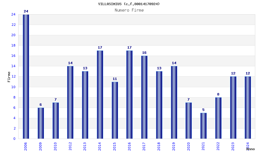 | Anno | Firme | Importi | Media | Naz. | Reg. | Prov. | Comu. |