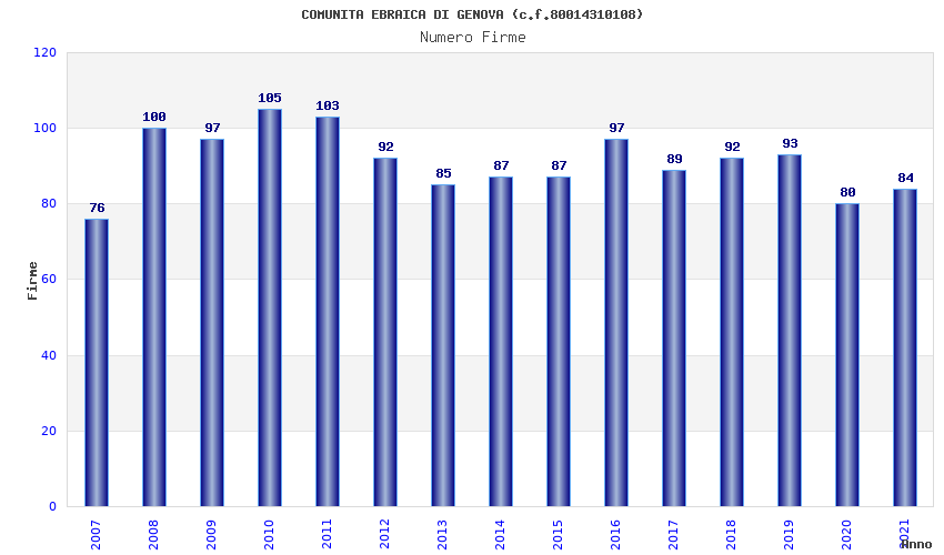| 2021 | 84 | 5.577,22 | 66,40 | 9.743 | 265 | 183 | 142 |