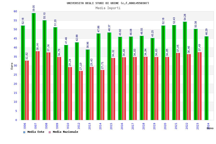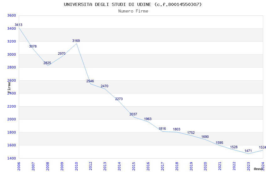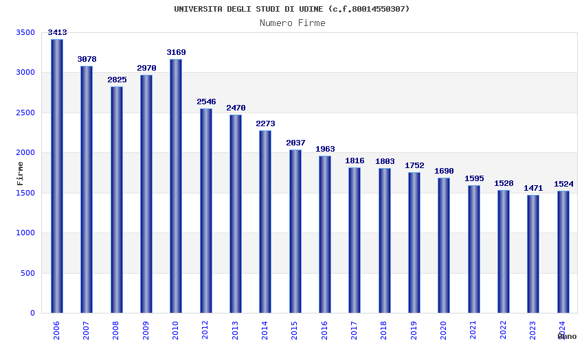 | Anno | Firme | Importi | Media | Naz. | Reg. | Prov. | Comu. |