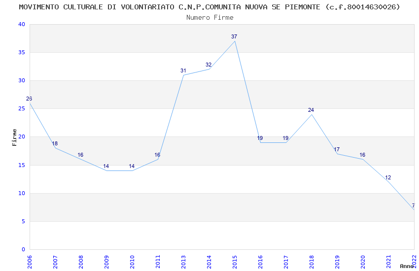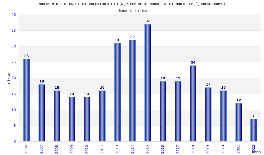 | Anno | Firme | Importi | Media | Naz. | Reg. | Prov. | Comu. |