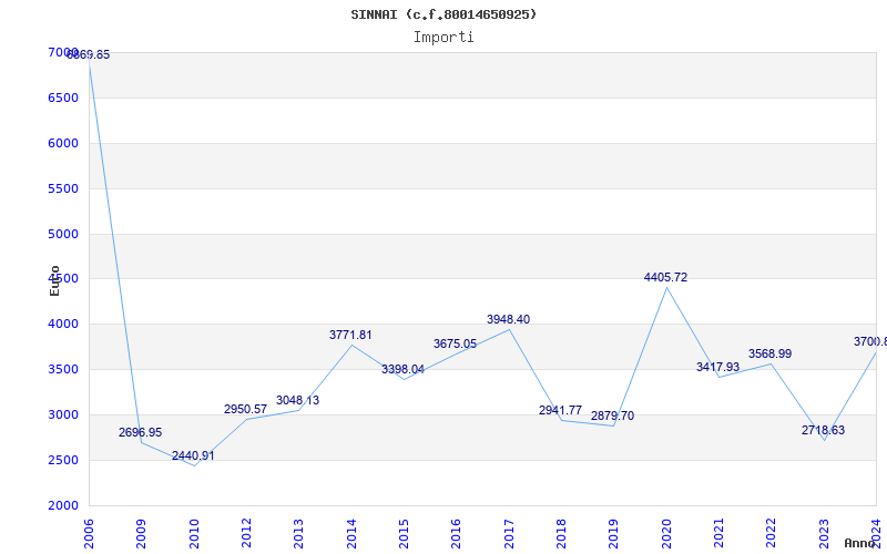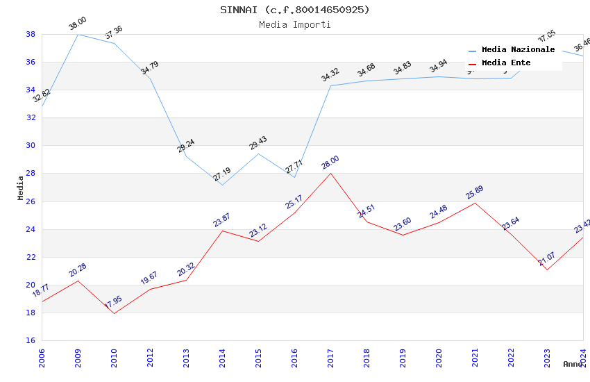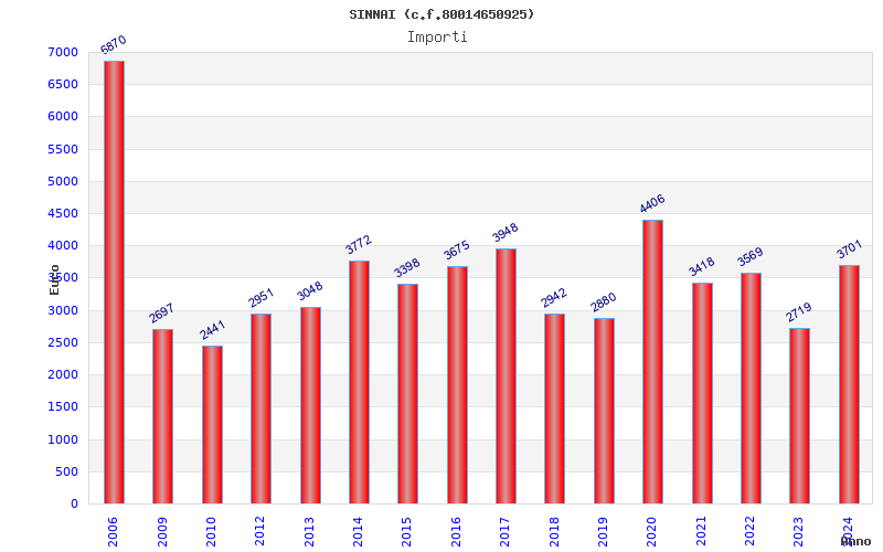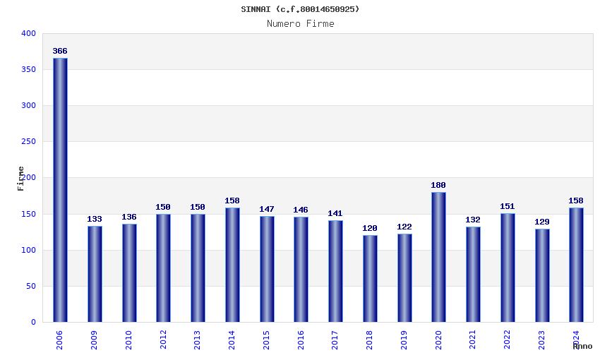 | Anno | Firme | Importi | Media | Naz. | Reg. | Prov. | Comu. |