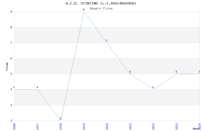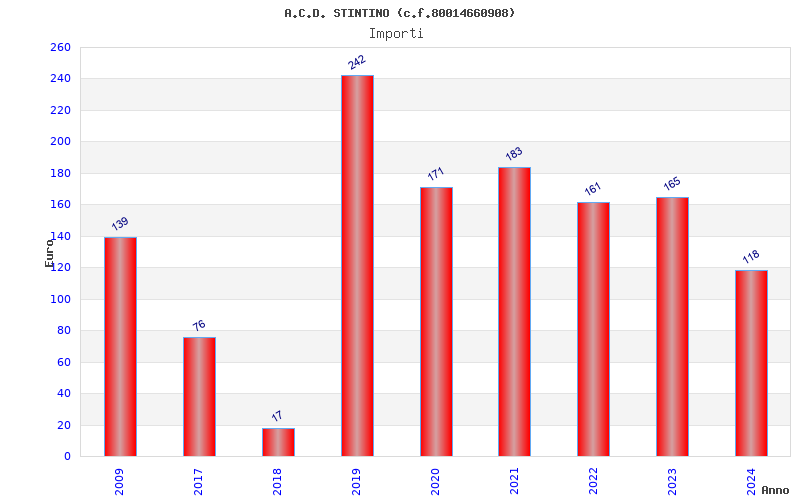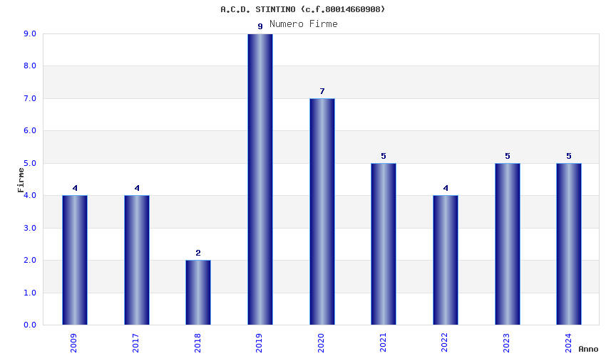 | Anno | Firme | Importi | Media | Naz. | Reg. | Prov. | Comu. |