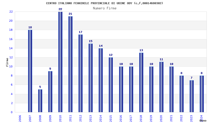 | Anno | Firme | Importi | Media | Naz. | Reg. | Prov. | Comu. |
